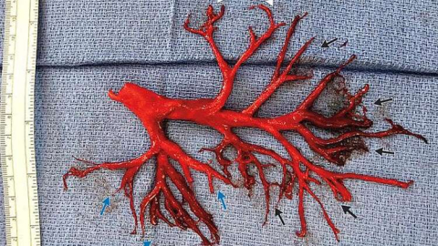 Uzmanlar, akciğerin soluk borusundan geçemeyecek kadar büyük olduğunu fakat çok nadir olsa da bronş ağacının şiddetli öksürme durumunda yırtılıp vücuttan atılabileceğini söylüyor.