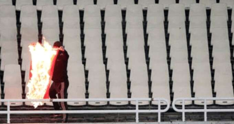 Ellerinde Yunan bayrağı ile takımlarını desteklemeye gelen taraftarlar Türk bayrağını ateşe verdi. Bu esnada hiçbir güvenlik görevlisinin olaya müdahale etmemesi de dikkat çekti.