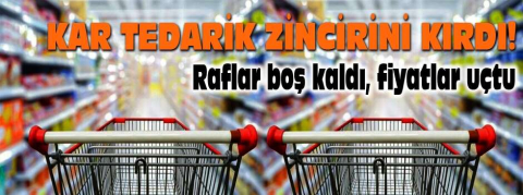 İstanbul’da etkili olan kar yağışı nedeniyle vatandaşların yanı sıra marketlere ürün taşıyan araçlar saatlerce yollarda kalınca, tedarik zinciri kırılan marketlerin rafları boş kaldı. Raflar hızla boşalırken, bazı ürünlerin fiyatları dudak uçuklattı.