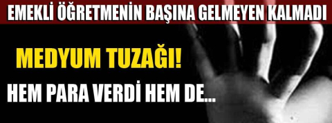 Bursa'da emekli bir öğretmen medyum tarafından dolandırıldı. Oğlunun eve dönmesi için medyumdan yardım isteyen kadın hem 5 bin lirasını kaptırdı hem de 3 gün medyumla cinsel ilişkiye girdiğini söyledi.