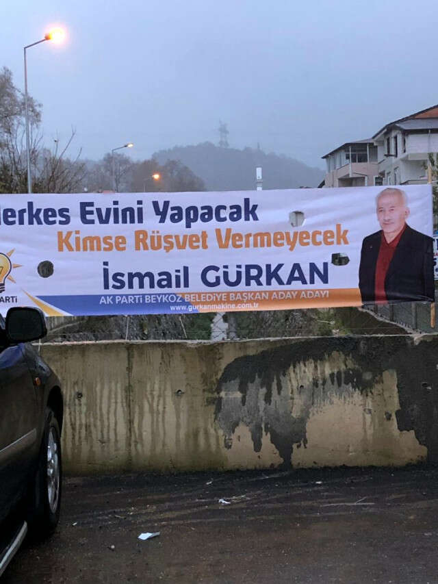AK Parti'den Beykoz Belediye Başkanlığı için aday adayı olan İsmail Gürkan, hazırladığı afişte, "Herkes evini yapacak, kimse rüşvet vermeyecek" dedi.