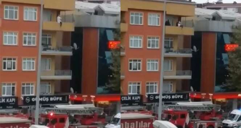 Polisin, 4. kattaki evin balkonuna çıkarak intihara teşebbüs eden kadını kurtardığı anlar cep telefonu kamerasına yansıdı. Görüntülerde polis, kadını çıktığı balkondan kucaklayarak son anda alıyor.