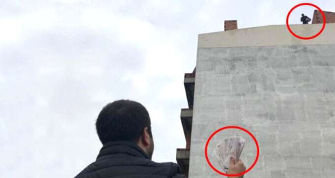İntihar için çıktığı çatıdan, parayı görünce koşa koşa indi!