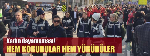 Kadın polisler hem korudu hem yürüdü!