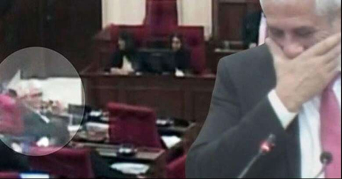 KKTC meclisinde kürsüye çıkan vekile, diğer vekil 'öpücük' gönderdi; kürsüdeki gülmekten konuşamadı.