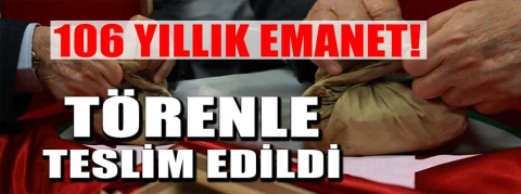 "Devlet-i Aliyye-i Osmâniyye 18 Teşrîn-i evvel 1331 tarihli kanun mucebince karşılığı tamamiyle tevdî' edilmiş beş Osmanlı liralık varaka-i nakdiyye bedeli Dersaâdet'de tesviye olunacakdır." TÖRENLE TESLİM ALINDI Nabluslu Alul ailesinin bir Osmanlı askerinin emanetini 100 yıldan fazla saklaması büyük yankı uyandırdı. Alul ailesi, bugün Nablus Valiliğinde düzenlenen törenle gözü gibi baktıkları Osmanlı askerinin emanetini Büyükelçi Demirer'e teslim etti.