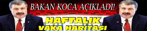Sağlık Bakanı Fahrettin Koca, illere göre haftalık vaka sayılarını gösteren haritayı paylaştı.