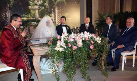 Ankara Bilkent Oteldeki düğün töreninde Cumhurbaşkanı Recep Tayyip Erdoğan, SP lideri Temel Karamollaoğlu ve AK Parti Milletvekili Ömer Çelik, nikah şahitliğini yaptı.