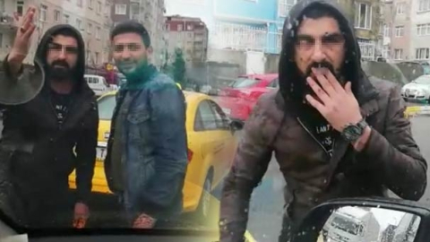 Aracın önünü kesen taksiciler, UBER sürücüsüne el kol hareketleri eşliğinde tehditler savurdu.