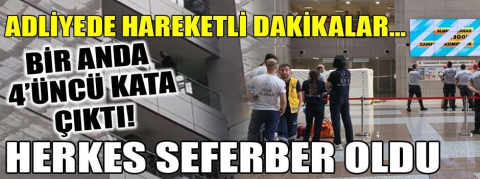 Adliyede bulunan bazı kişilerin, cep telefonu kameralarıyla intihar girişimini kaydettiği görüldü.