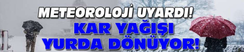 Meteoroloji Genel Müdürlüğü'nün son hava durumu raporuna göre kar yağışı yurda geri dönüyor. Rapora göre hafta sonu 15 kentte kar yağışı etkili olacak. Meteoroloji Akdeniz Bölgesi'nin yüksekleri, İç Anadolu'nun güneyi ve doğusu, Karadeniz Bölgesi'nin iç ve yüksek kesimleri ile Doğu Anadolu Bölgesi'ne çığ uyarısında bulundu.