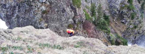 Zorlu arazi şartlarında arama kurtarma çalışmasının yürüten ekipler halatlar yardımıyla tepeden aşağıya iniş yaptı.