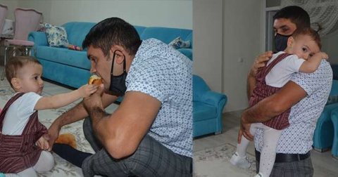 Ordu’nun Fatsa ilçesinde korona virüs (Covid-19) teşhisi konulan ve evinde karantinada bulunduğu esnada 2 yaşındaki kızını camın arkasından seven baba, sağlığına kavuşunca yavrusunu kucağına aldı.