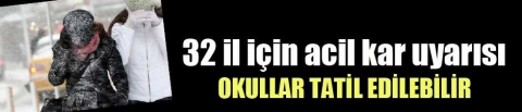 Meteoroloji, 32 ilde hayatı durma noktasına getirecek 3 günlük kar yağışı için alarm verdi. Bugün 6 ilde etkili olan kar yağışının asıl etkisini yarından itibaren göstereceği belirtilirken, kar nedeniyle birçok ilde okullar tatil edilebilir.