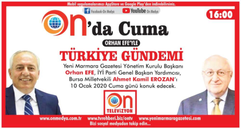 Yeni Marmara Gazetesi Yönetim Kurulu Başkanı Orhan EFE, İyi Parti Genel Başkan Yardımcısı, Bursa Milletvekili Ahmet Kamil EROZAN'I 10 Ocak 2020 Cuma Günü konuk edecek.