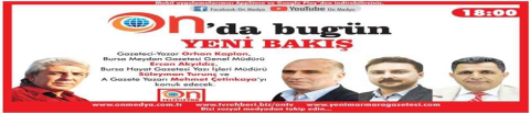 Gazeteci-Yazar Orhan kaplan, A Gazete Yazarı Mehmet Çetinkaya, Bursa Hayat Gazetesi Yazı İşleri Müdürü Süleyman Turunç ve Bursa Meydan Gazetesi Genel Müdürü Ercan Akyıldız, On TV’de Orhan Kaplan’ın konuğu oluyor…