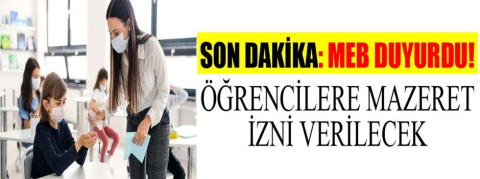 Milli Eğitim Bakanlığınca, yüz yüze eğitim döneminde alınan önlem ve tedbirlere ek olarak, öğrenciler ile ilgili yeni bir genelge gönderildi. Bakan Mahmut Özer imzasıyla 81 İl Milli Eğitim Müdürlüğüne gönderilen genelgeye göre kronik rahatsızlığı olan veya Covid-19 hastası ya da temaslısı olduğu için karantina sürecinde olan öğrenciler e-Nabız sistemi üzerinden alacakları belgeyi okul müdürlüğüne iletmeleri halinde mazeretli sayılacak.