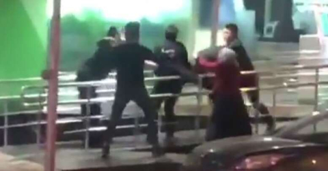 O esnada oradan geçen bazı vatandaşların da şaşkınlık içinde izlediği kavga anı sosyal medyada paylaşıldı.