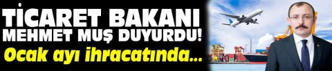 Ticaret Bakanı Mehmet Muş, ocak ayı dış ticaret rakamlarını açıkladı. Ocak ayında ihracat rekoru kırıldı. İhracat yüzde 17,3 artışla 17,6 milyar dolar oldu. İthalat ocak ayında 28 milyar olarak gerçekleşirken, dış ticaret açığı 10,4 milyar dolar olarak kayıtlara geçti.