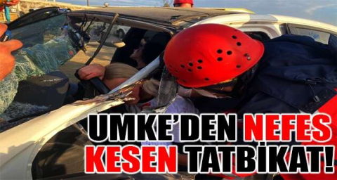 Samsun'da UMKE ekipleri tarafından düzenlenen trafik kazası kurtarma tatbikatı gerçeği aratmadı.