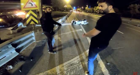 Ünlü teknoloji editörü ve Youtuber Hakkı Alkan, Maslak Büyükdere Caddesi üzerinde lüks otomobiliyle seyir ettiği esnada sapağı kaçıran ve aniden şerit değiştiren motosikletliye çarptı. Kaza sonucu yere düşen motosikletteki çift şans eseri yara almazken, o anlar ise kask kamerasına yansıdı.
