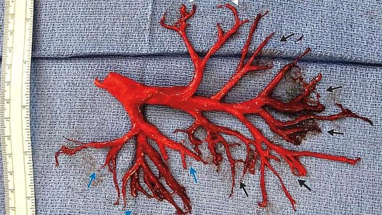 ABD'nin Kaliforniya eyaletinde 36 yaşındaki bir adam kalp çarpıntısı sebebiyle Kaliforniya Üniversitesi hastanesine başvurdu. Kardiyovasküler sağlık durumu oldukça kritik olan hastaya kalp pili takıldı. Kalbinde ejeksiyon fraksiyonu gözlemlenen hasta bir hafta boyunca yoğun bakımda kaldı ve oksijen destek ünitesine bağlandı. Rahatsızlığı sebebiyle oldukça şiddetli öksüren adam, sağ akciğerinin bronş ağacı bölgesini tükürdü. Durumu günden güne kötüleşen hasta, doktorların tüm çabalarına rağmen hayatını kaybetti. Uzmanlar, akciğerin soluk borusundan geçemeyecek kadar büyük olduğunu fakat çok nadir olsa da bronş ağacının şiddetli öksürme durumunda yırtılıp vücuttan atılabileceğini söylüyor.