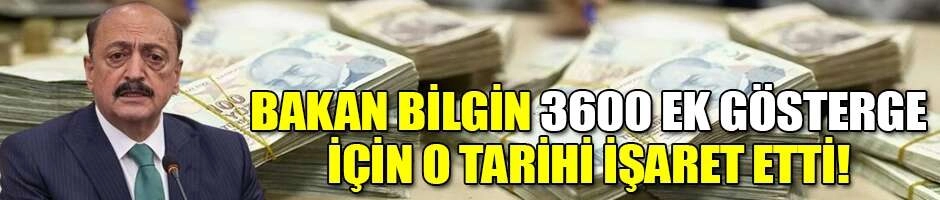 3600 ek gösterge içinse mayıs ayını işaret eden Bakan Bilgin, "3600 ek gösterge meselesinde çalışmamız son aşamasına geldi. Ümidimiz Mayıs ayında çalışmayı tamamlamak ve Meclise intikal ettirmek" ifadelerini kullandı.