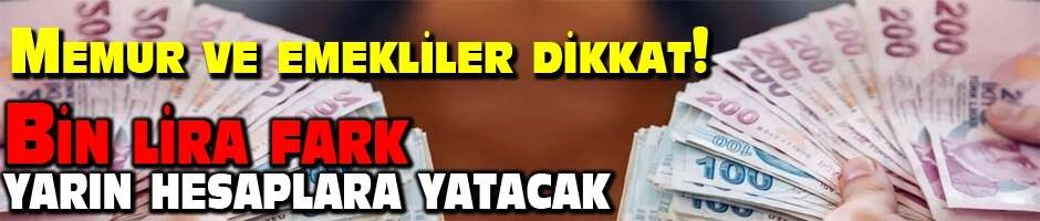 Çalışma Bakanlığı'ndan yapılan açıklamaya göre, 2 milyon 386 bin 565 kişinin aylıklarında oluşan fark tutarları bu hafta yatacak. 2.5 puanlık zam farkı kapsamında yaklaşık 13.7 milyarlık ödeme yapılacak. Memurlara 800-1000 TL fark yatacak.