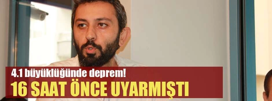 Jeofizik Mühendisleri Odası Yalova Temsilcisi Osman Kendir’in 'Marmara’da gerilim arttı her an deprem olabilir' açıklamasından 16 saat sonra merkez üssü Yalova’nın Çınarcık ilçesi olan 4.1 büyüklüğünde bir sarsıntı meydana geldi.
