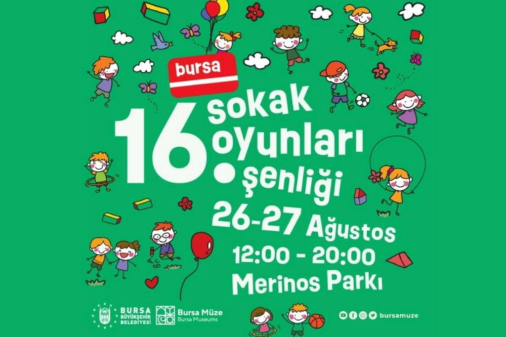 Bursa Büyükşehir Belediyesi Müzeler Şube Müdürlüğü tarafından unutulmakta olan sokak oyunlarını tekrar gündeme getirmek, yaşatmak ve çocuklar arasındaki sosyal iletişimi artırmak amacıyla düzenlediği Sokak Oyunları Şenliği’nin 16.’sı 2023’te sizlerle buluşacak. Bursa Kent Müzesi tarafından 2007 yılında başlatılarak geleneksel hale gelen ve bu yıl 16.’sı düzenlenecek olan Sokak Oyunları Şenliği, 26-27 Ağustos tarihlerinde 12.00-20.00 saatleri arasında Merinos Parkı’nda gerçekleşecek. Sokak oyunlarının öğretilerek, yeniden canlandırılmasının amaçlandığı şenliğe katılacak 7’den 77’ye herkes oyunların eğitici, bir o kadar da mücadeleci dünyası ile buluşacak. Şenlikte sokak oyunlarının yanı sıra yarışmalar, atölye çalışmaları ve sahne gösterileri küçük büyük demeden sizleri bekliyor olacak. Tüm etkinliklerin ücretsiz olacağı 16. Sokak Oyunları Şenliği’ne hepinizi bekliyoruz.
