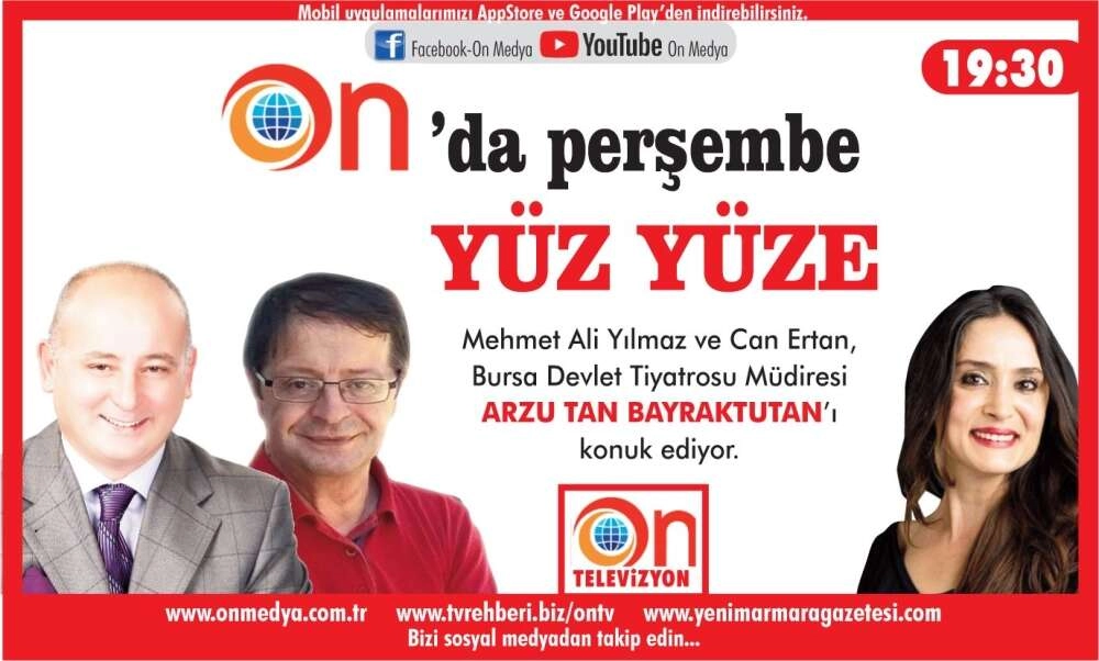 Bursa Devlet Tiyatrosu Müdiresi Arzu Tan Bayraktutan, On TV'de Mehmet Ali Yılmaz ve Can Ertan'ın konuğu olacak.