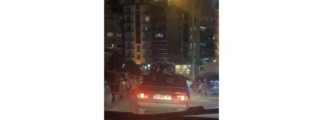Bursa'da bir grup gencin kamyonetin kasasındaki tehlikeli yolculuğu kameraya yansıdı.