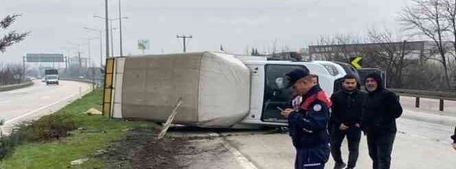 Kaza, Bursa-Ankara karayolu üzeri İnegöl girişinde meydana geldi. Bozüyük istikametinden İnegöl'e seyir halinde olan sürücü Suat Tozlu (34) yönetimindeki 34 BYJ 341 plakalı kamyonet, yağış nedeniyle kayganlaşan yolda sürücüsünün kontrolünden çıkarak devrildi. Kaza sonucu araçtaki yolcu Ömer U. (23) yaralandı, sürücü ise şans eseri yaralanmadı. Yaralı olay yerine sevk edilen ambulansla İnegöl Devlet Hastanesine kaldırıldı.