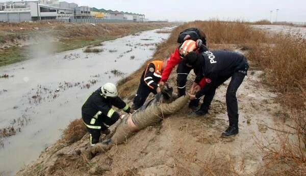 Afyonkarahisar'da köpeklerden kaçmak isterken dere yatağına düşüp çamura saplanan genç, kendi imkanlarıyla kurtulmayı başaramayınca AFAD ve itfaiye ekipleri seferber oldu.