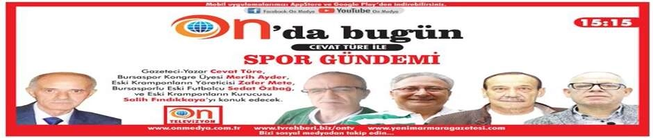 Bursaspor Kongre Üyesi Merih Ayder, Eski Kramponların Kurucusu Salih Fındıkkaya, Eski Kramponların Yöneticisi Zafer Mete ve Bursasporlu Eski Futbolcu Sedat Özbağ, On TV'de Cevat Türe'nin konuğu oluyor...