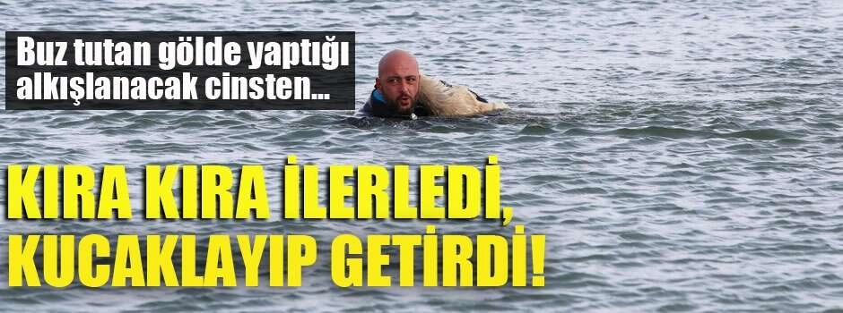 Bunun üzerine İl Emniyet Müdürlüğü Sualtı Grup Amirliğinde görevli dalgıç polis Burak Ökten, gölde buzları kırarak ilerleyip köpeğe ulaştı. Soğuk ve açlıktan ölmek üzere olan köpeği sırtına alıp yüzerek kıyıya getiren Ökten, hayvanı veteriner hekimlere teslim etti.