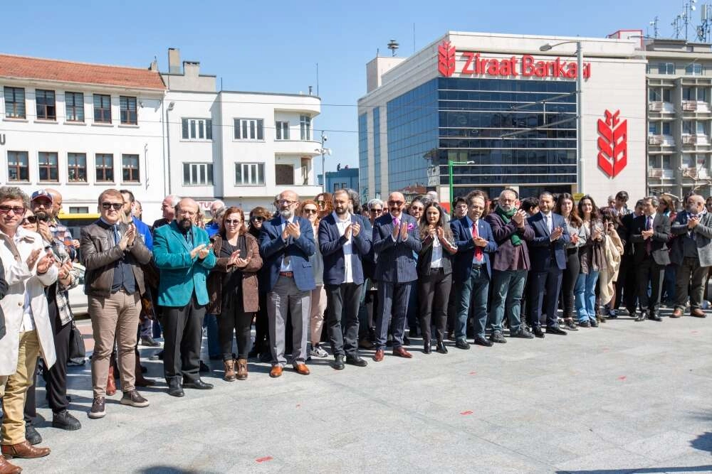 Bursa’da tiyatro sanatına emek veren sanatçılar, ‘27 Mart Dünya Tiyatro Günü’nde Atatürk heykeline çelenk koydu.