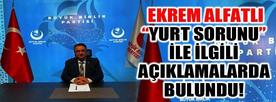 Büyük Birlik Partisi (BBP) Genel Başkan Yardımcısı Ekrem ALFATLI “YURT SORUNU” ile ilgili açıklamalarda bulundu. Alfatlı "Evlatlarının Üniversiteye yerleştiğine sevinemeyen bir kesim oluşturmayalım “ dedi.