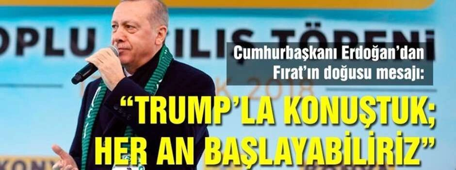 "TRUMP'LA KONUŞTUK" Zeytindalı harekatında bunu yaşadık, Afrin'de bunu yaşadık. Sincar'da da bunu yaşadık. Şimdi kazdıkları kuyulara teröristleri gömüyoruz. Gömmeye de devam edeceğiz. Sayın Trump'la konuştuk. Fırat'ın doğusuna bu teröristlerin gitmesi lazım. Gitmezlerse biz göndereceğiz. Madem ki ABD ile stratejik ortağız gereğini yapmasını lazım.