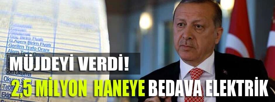 2,5 MİLYON HANENİN ELEKTRİK İHTİYACINI DEVLET KARŞILAYACAK "Düzenli sosyal yardım alan ihtiyaç sahibi vatandaşlarımızın aylık 150 Kilowatt saate kadar elektrik tüketimlerini devlet olarak biz üstleniyoruz. Bu kapsamda yaklaşık 2,5 milyonun üzerindeki hanede her ay ortalama 80 liralık elektrik faturasını devlet karşılamış olacak."