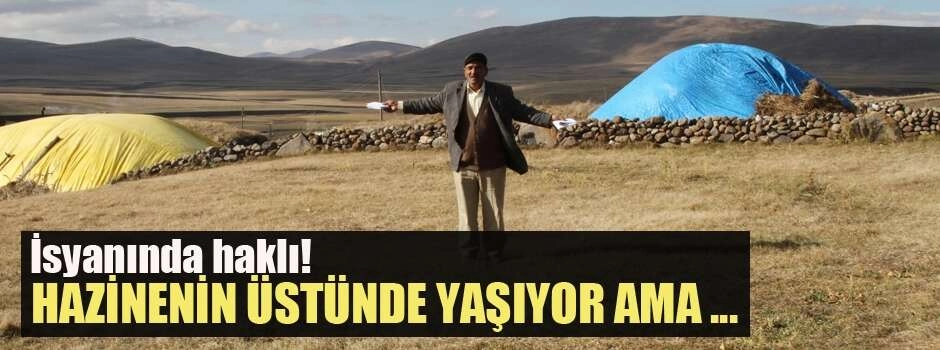 Ardahan merkeze bağlı Çalabaş köyünde yaşayan 66 yaşındaki adam, kendisine ait arazide hazine olduğunu ancak Kültür Bakanlığının kazı için izin vermediğini söyledi. Yaşlı adam, "Hazinenin üzerinde yaşıyorum ama ekmeğe muhtacım" diyerek isyan etti.