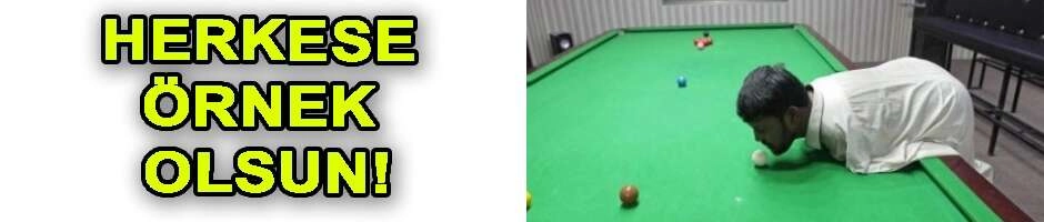 Pakistan'ın Pencap eyaletine bağlı Samundri'de doğuştan kolları olmayan Muhammad Ikram, bilardodaki yeteneğiyle herkese örnek oldu. Ikram, çenesini kolları yerine kullanarak herkesi mağlup ediyor. Sırası geldiğinde bilardo masasına çıkarak hamlesini değerlendiren 32 yaşındaki Ikram, sert bir şekilde çenesiyle vurduğu topu cebe sokarak tüm sayıları topluyor. Bilardo sevgisini yıllar önce oyuncuları izleyerek kazanan Ikram, pratik yaparak yıllar içinde oyun salonlarında yarışacak seviyeye geldi. KAYNAK : İHA