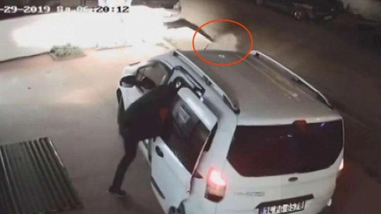 İstanbul, Pendik'te sabaha karşı bir iş yerinden malzeme çalan şüphelileri fark eden karşı binadan bir kişi balkonda bulunan turşu bidonlarını şüphelilerin üzerine attı. Karşı komşuya yakalanan şüpheliler hızla uzaklaşırken o anlar iş yerinin kamerasına yansıdı.