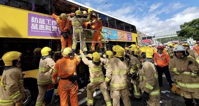Çin’in Hong Kong Özel İdari Bölgesi'nde hareket halindeki iki katlı iki yolcu otobüsünün çarpışmasıyla 77 kişi yaralandı.