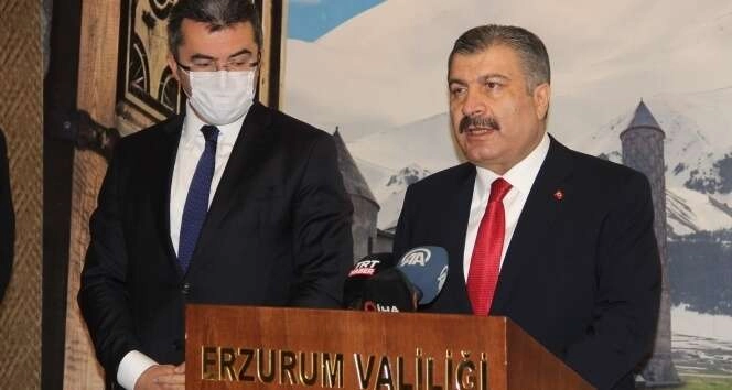 “Erzurum'da bir ay öncesine göre yüzde 60 vaka sayısında düşüş söz konusu” Erzurum ve civar illerin özellikle geçen ay vaka artışında gündeme alınan illerden olduğunu kaydeden Bakan Koca, “Valilerimiz, il müdürlerimizle, başhekimlerimizle, sağlık ordumuzla sıkı koordinasyon ile mücadeleyi ara vermeden sürdürdük. Ağustos sonu ve Eylül ortasına kadar pik yaşayan Erzurum, yapılan hızlı ve etkili tedbirlerle bu artışı kontrol altına aldık. Bir ay öncesine göre yüzde 60 vaka sayısında düşüş söz konusu. Yatak doluluk oranı Türkiye ortalamasının altında. Bu düşüşün devam etmesi, hasta ve ağır hasta sayımıza yansıması için Erzurumlu hemşehrilerimizin mücadeleyi bırakmaması lazım. Tedbirlerle bu sayının daha da düşeceğine inanıyoruz. Salgın yönetiminde filyasyonun önemini daha iyi anlıyoruz. Dünyada bu sistemi nadir uygulayan ülkelerden birisi Türkiye'dir. Semptomu olsun olmasın bütün pozitif vakalarını HES sistemine kaydederek sıkı takibini yapıyoruz. Bulaşma zincirini kırmaya başladık. Bugünlerde bunun etkisini görüyoruz. Erzurum'da şu an 248 her biri üç kişiden oluşan ekibimiz sahada hızla çalışıyor. Türkiye genelinde temaslıların taramasını 7.6 saat olan sürede yapıyoruz. Bu süreyi daha da aşağıya çekmeyi hedefliyoruz” şeklinde konuştu.
