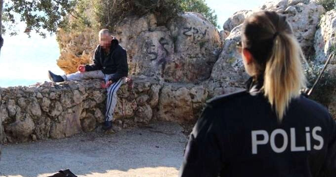 3.5 SAAT SÜREN ÇALIŞMALARA RAĞMEN İKNA OLMADI Karşısında polisi gören ve isminin T.K. (24) olduğu öğrenilen genç kendini duvarın arkasından falezlere doğru sarkıttı. Polis ve itfaiye ekipleri eli yüzü kanlar içinde kalan genci ikna etmek için uzun süre çaba sarf etti. Ekiplerin çay, sigara, kahvaltı isteklerini geri çeviren T.K. kimseyi yanına yaklaştırmadı. Psikolojik sorunları olduğu ve tedavi gördüğü iddia edilen genç 3.5 saat süren çalışmalara rağmen ikna olmadı. Zaman zaman duvarın kenarına gelen ve yaklaşılmasıyla tekrar falezlere kendini sarkıtan genç korku dolu anların yaşanmasına neden oldu.