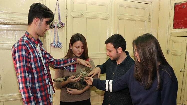 Karaman'da çöpte yaralı halde buldukları kediyi kentte imkan olmadığı için Konya'da tedavi ettiren 4 öğrenci, sahiplendikleri hayvana yeniden yürüyebilmesi için fizik tedavi hareketleri yaptırıyor.