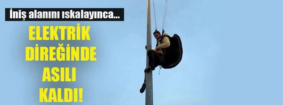 Kayseri'de Ali Dağı'ndan paraşütle atlayan bir kişi elektrik direğinde asılı kaldı. Paraşütçü, elektrik şirketi ve itfaiye ekiplerince kurtarıldı.