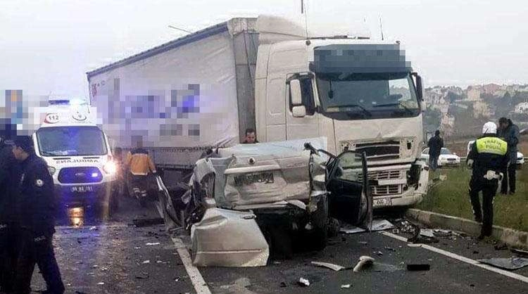 Kaza, Tekirdağ-İstanbul karayolu üzerindeki İstanbul Bulvarı mevkiinde sabah saatlerinde meydana geldi. Henüz kimliği öğrenilemeyen ve uyuduğu iddia edilen sürücünün kullandığı 34 ZUD 75 plakalı TIR, kırmızı ışıkta bekleyen aralarında minibüs, otobüs ve otomobilin de bulunduğu 7 araca çaptı. Kaza sonrası bazı araçlar demir yığınına dönerken, 10 kişi de yaralandı. Polis ekipleri karayolunu trafiğe kapatırken, yaralılar, olay yerine sevk edilen sağlık ekipleri tarafından Tekirdağ Devlet Hastanesi'ne sevk edildi. Karayolu araçların kaldırılmasının ardından trafiğe açılırken, polisin kazayla ilgili soruşturması sürüyor.