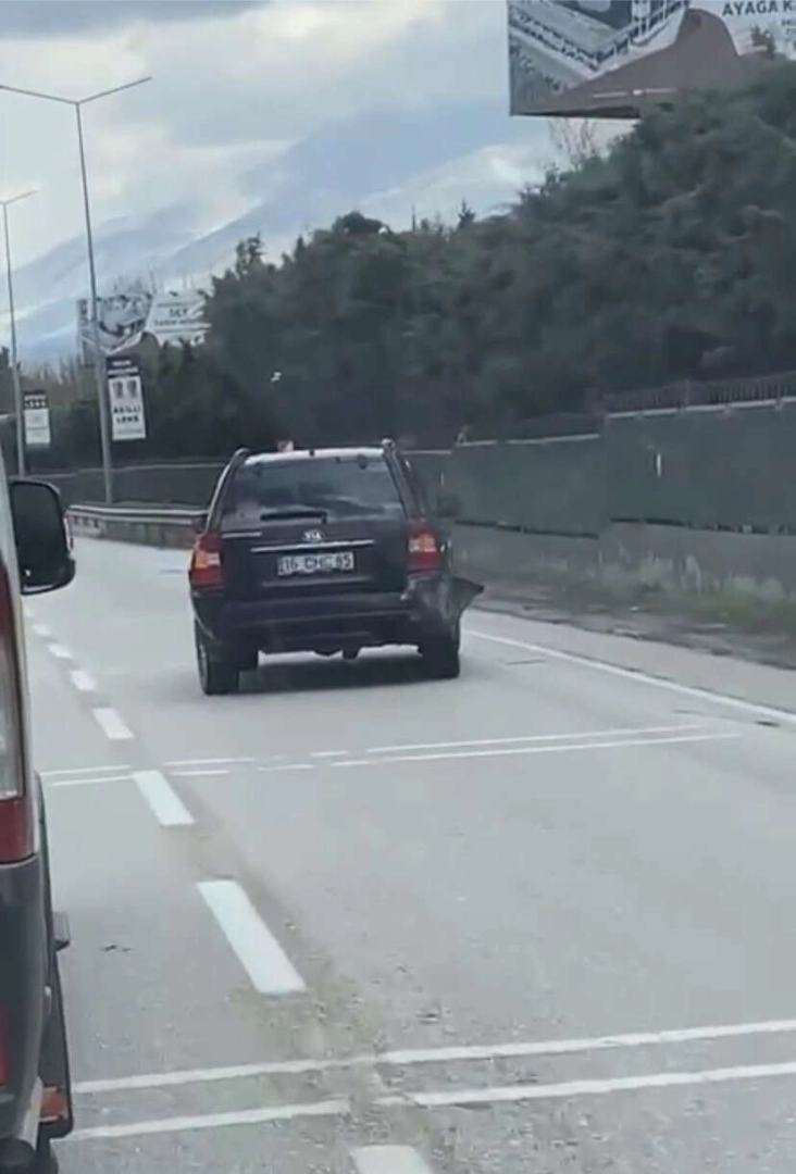 Bursa'da yan yan giden cip, trafikteki başka bir sürücünün cep telefon kamerasına yansıdı. Olay, merkez Soğanlı Mahallesi Avrupa Konseyi Bulvarı üzerinde meydana geldi. Edinilen bilgiye göre, kaza yapan cipin sürücüsü, aracını götüreceği yere çekiciye bindirmek yerine sürerek götürmeyi tercih etti. Cip ise lastiklerinin yamukluğu sebebiyle yan yan giderken o anlar trafikteki başka bir sürücünün cep telefon kamerasına yansıdı.